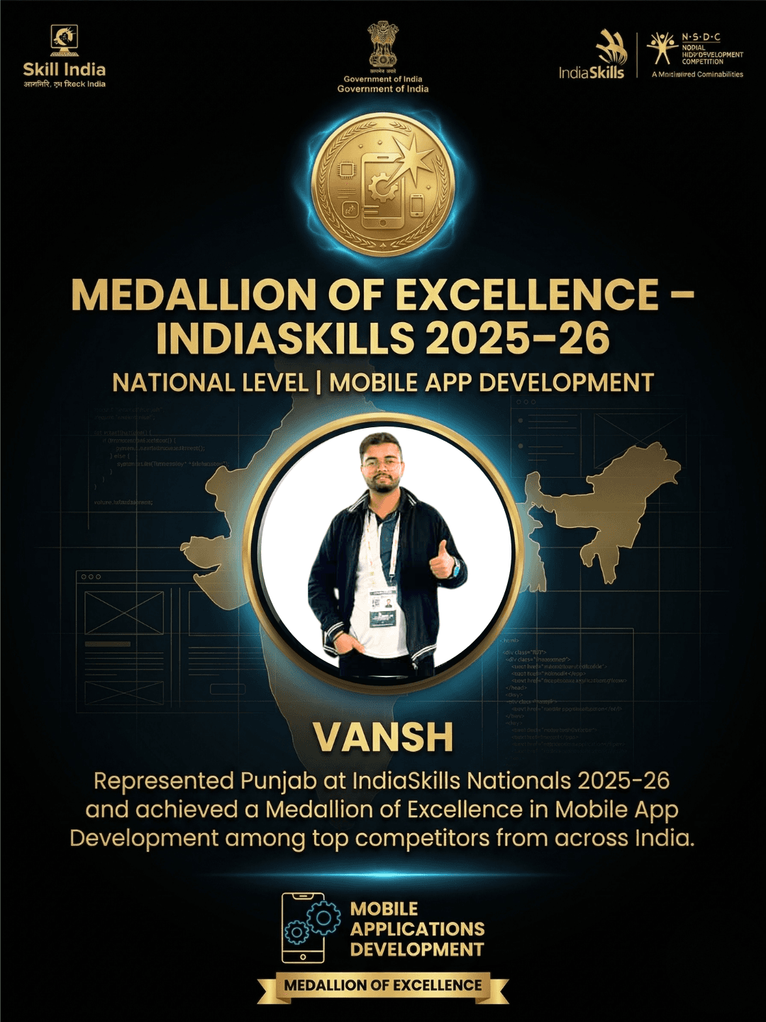 I’m Vansh, a Software Engineer at 2Cents Capital, building Valura.ai, and former SDE Intern at Annam.ai (IIT Ropar). IndiaSkills ’26 North Regionals Gold Medalist, IndiaSkills ’26 Nationals Medallion for Excellence (App Dev). Specialize in App Dev, Agentic AI, & engage as public speaker & mentor.